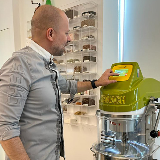 Every day it’s a pleasure to develop the synergy with Maestro Luca Montersino who relies on Esmach technology for the creation of his products: the GL easy sourdough generator to support the management of sourdough doughs, the SPI “AI” and the brand new SATURNE EVO “AI” planetary mixer for the dough, the Climother® proofers to maintain it and the E-round that divides and rounds the dough, while still keeping the whole tradition authentic.