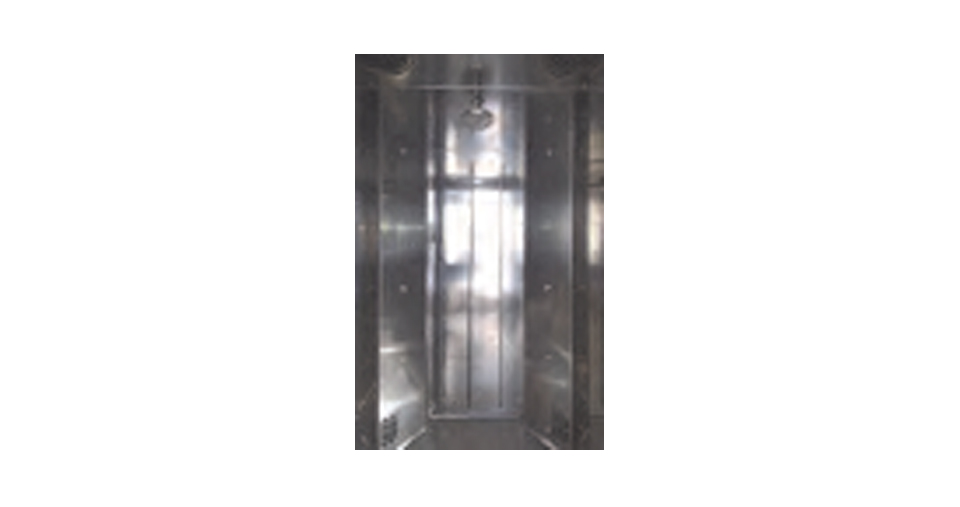 Interamente in acciaio inox, è assemblata senza saldature evidenti. La struttura appare liscia e pulita. Il pavimento della camera ha bordi rialzati a 45° per facilitare la pulizia nei punti che tendono a sporcarsi maggiormente.